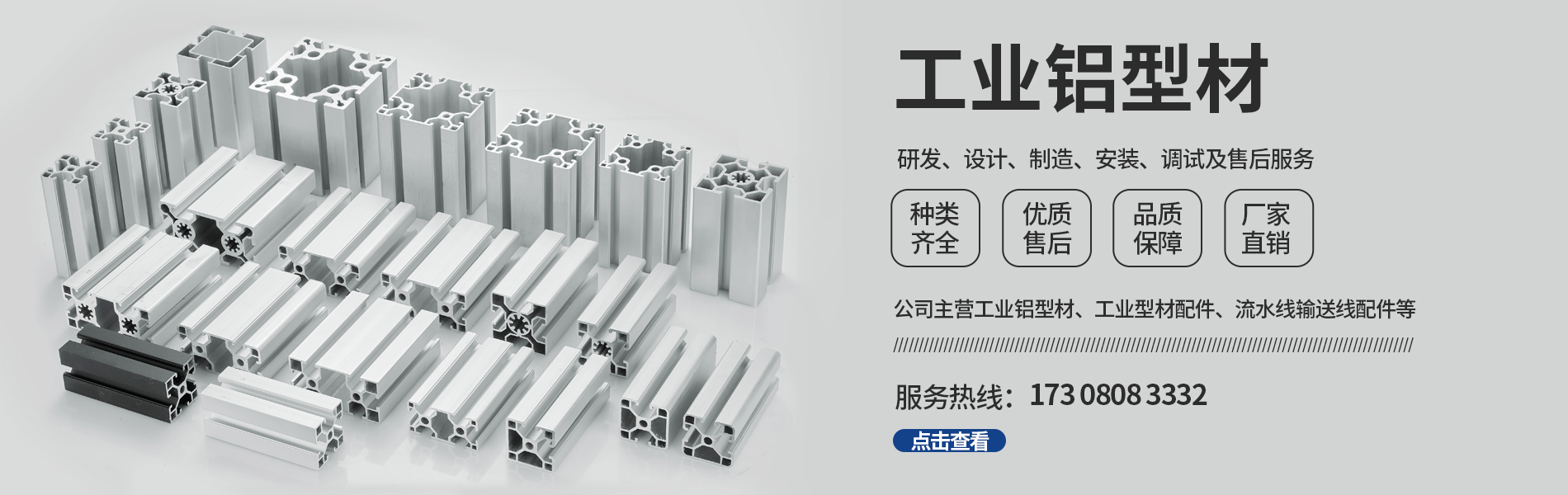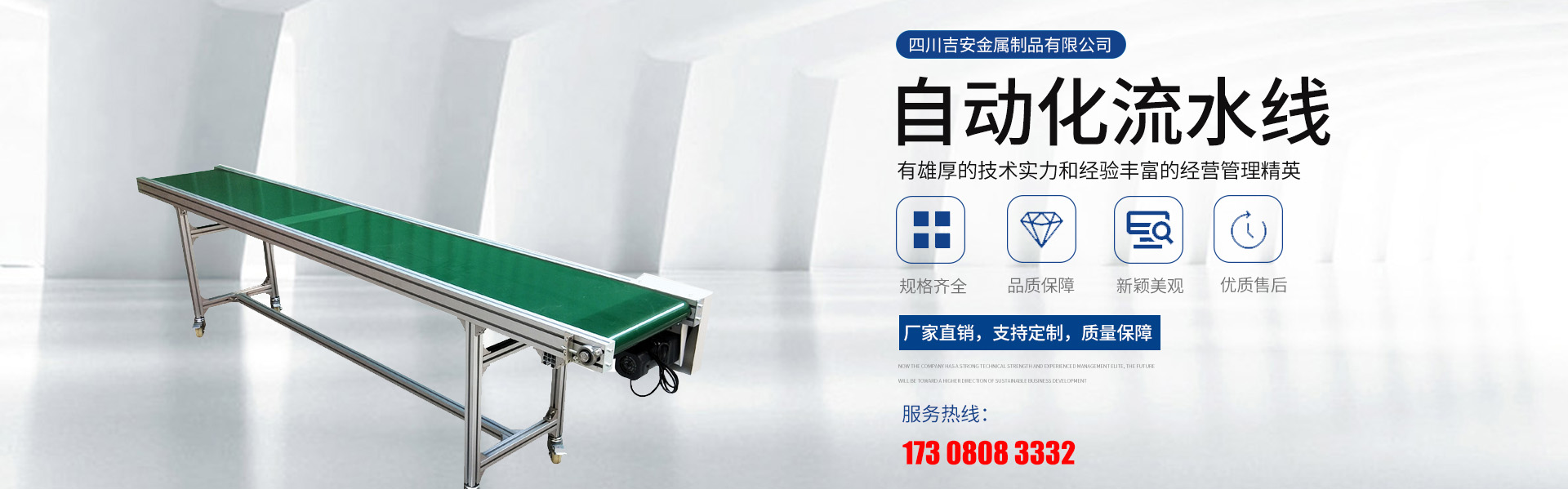 四川吉安金屬制品有限公司是集工業(yè)鋁型材及配件、貨架、工作臺、皮帶輸送線、自動化流水線、線棒精益管及扣件、鈑金和鋁合金流利條、鋁線棒及扣件、倉儲設(shè)備、物流器具、周轉(zhuǎn)臺車、工位器具、非標(biāo)器具設(shè)...